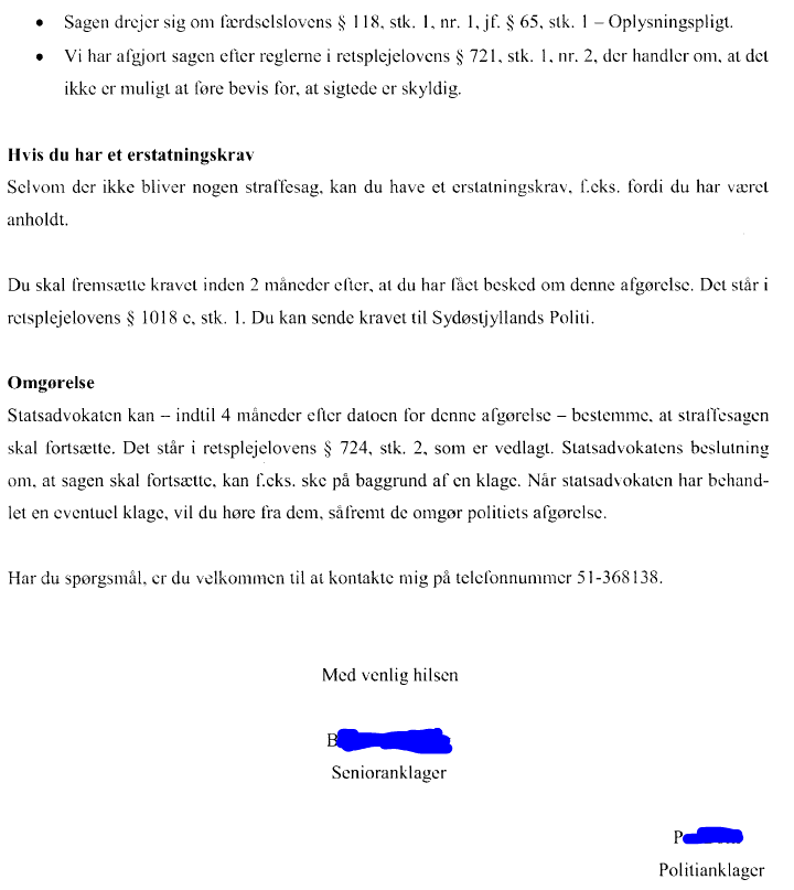 Brev fra Sydøstjyllands Politi, den 9. december 2025