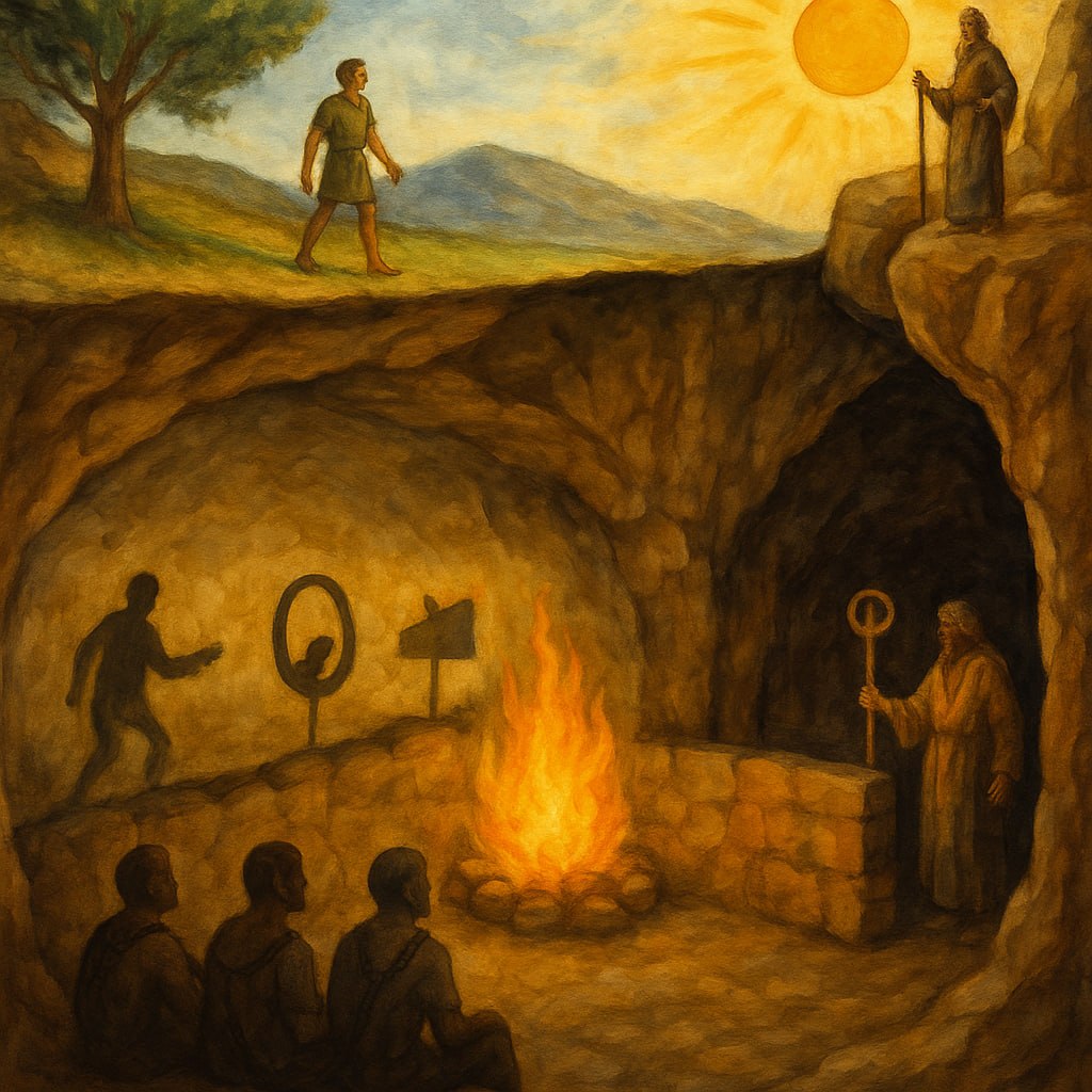 Mellem Platon og Skabelsesberetningerne i Bibelen.
