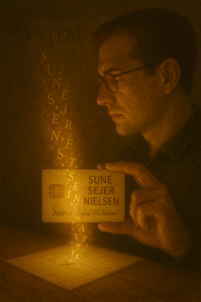 Navnet står ikke længere som en personlig signatur, men som en kode, en reference – en identifikator, som banker og myndigheder kan aflæse.
