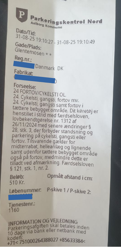 Jeg ønsker hermed at indgive en formel rådsmandsklage over Parkeringskontrol Nord (under Aalborg Kommune) i forbindelse med deres udstedelse og håndtering af en parkeringsafgift udstedt i Brøndby Kommune – løbenummer 0264302, dateret 31.08.2025.