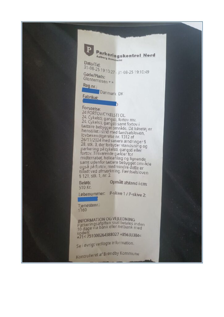 Vedrørende: Parkeringsmeddelelse udstedt den 31.08.2025 kl. 19:10